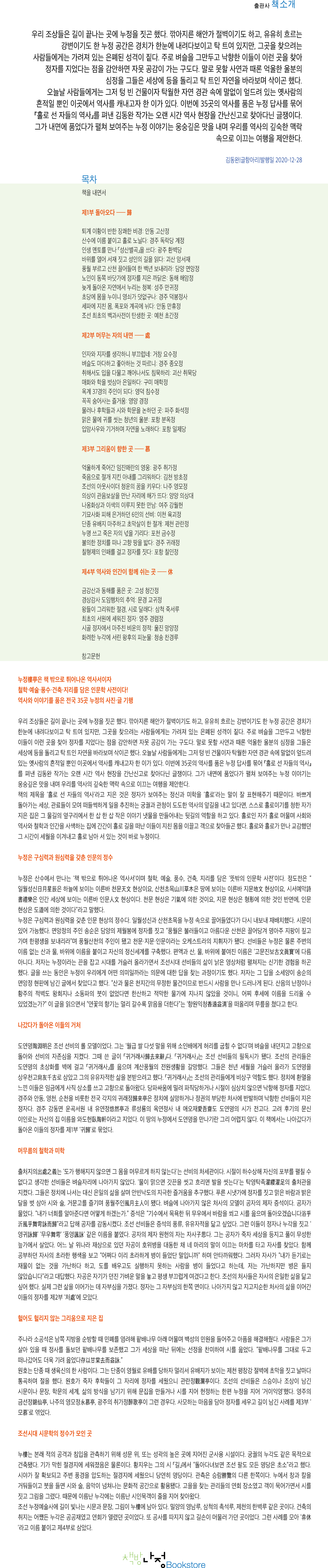 홀로 선 자들의 역사-조선의 누정, 비경에 숨은 이야기를 찾아서_김동완(글항아리)